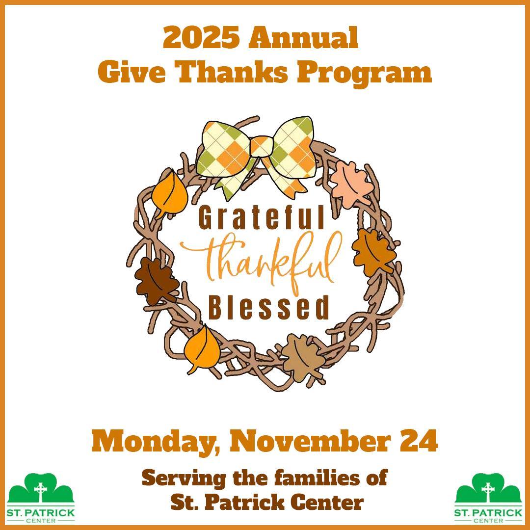 Schnucks will donate stuffing mix, instant potatoes, canned vegetables, cranberry sauce, yams and gravy. Each family will receive a bag of these items. We are asking for the frozen turkeys along with the suggested items so the St. Patrick families will have a few extras to take home with their Thanksgiving Dinner.